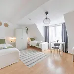 El Spacestays Five Comfort Studio incluye 1 dormitorio. La propiedad destaca por ofrecer comodidades como una secadora y toallas de baño en el baño. Además, hay una bañera, un inodoro separado y una ducha.